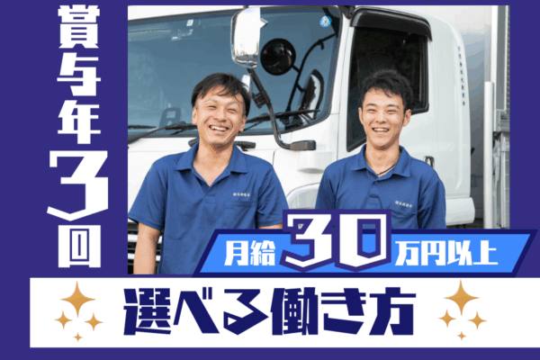 | 給与 | 月給30万円以上 賞与年3回 ■丸新商会ではドライバーに還元するため年3回賞与を支給しています! |